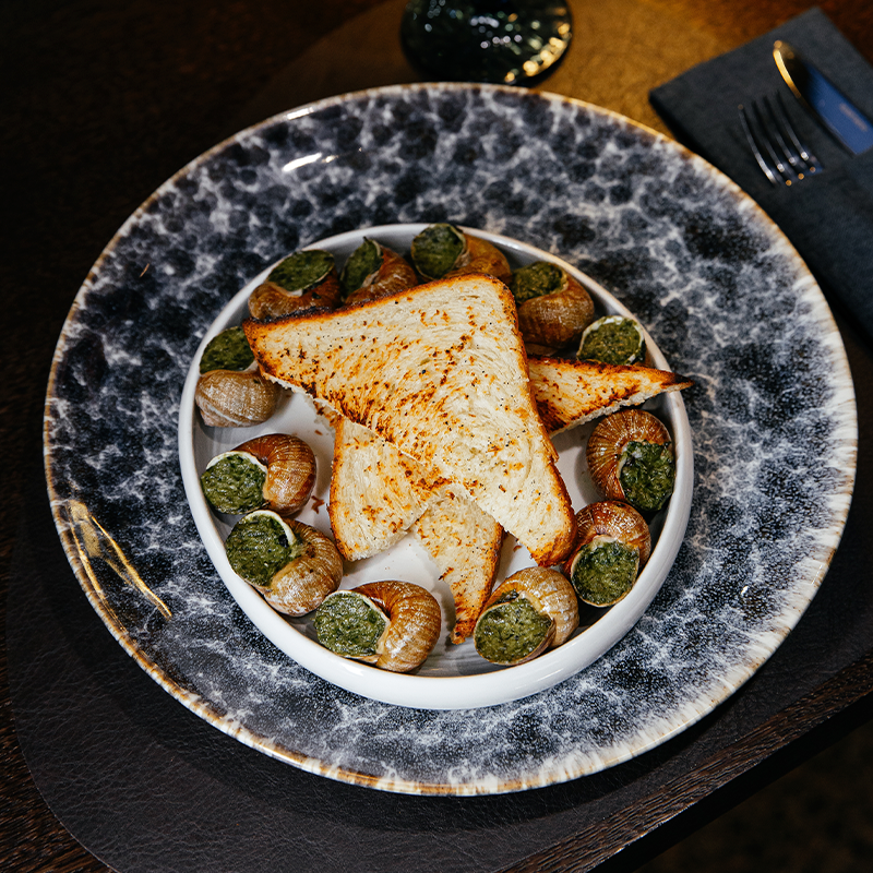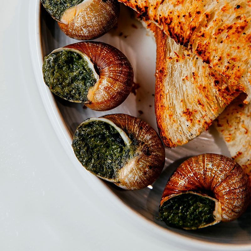 Состав: филе улиток Helix aspersa Maxima, масло оливковое, базилик, петрушка, сыр Пармезан, кедровые орехи, соль, чеснок.